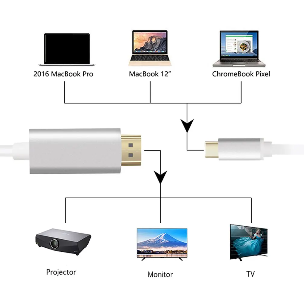 Type C To HDMI Cable USB C To HDMI Cable Converter 2m 4K USB 3.1 30Hz HD Extend Adapter For Macbook