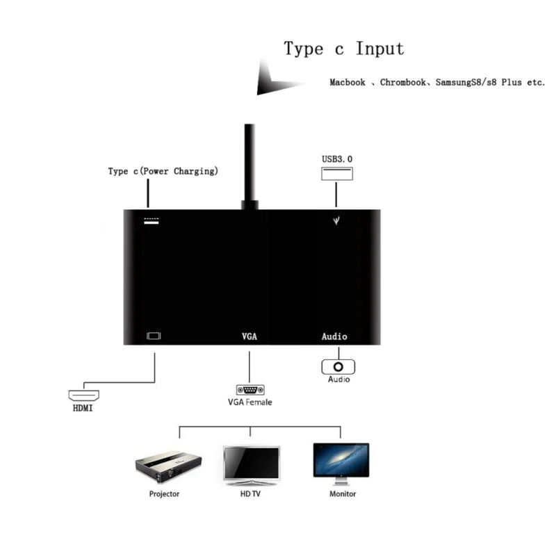 RESPONSE TO "HOT SALE Black Type-C To HDMI VGA USB Hub 5 Ports 3.5mm Audio Jack Charging Adapter Converter"