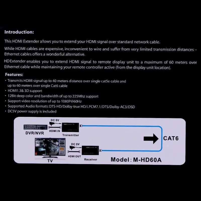 HDMI 1080P Network Extender Transmitter Receiver Over CAT5/6 Single Cable