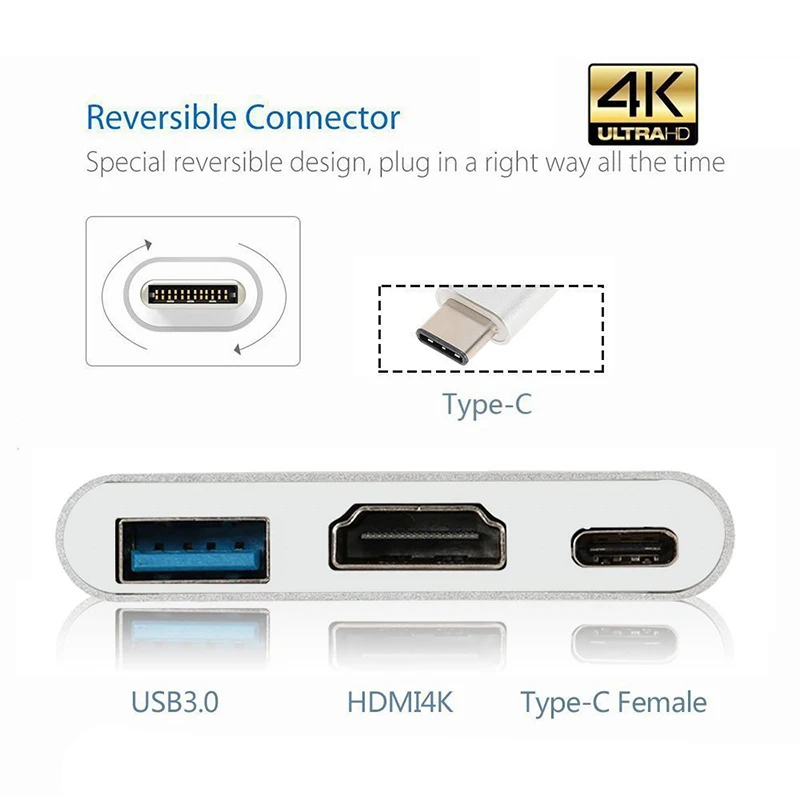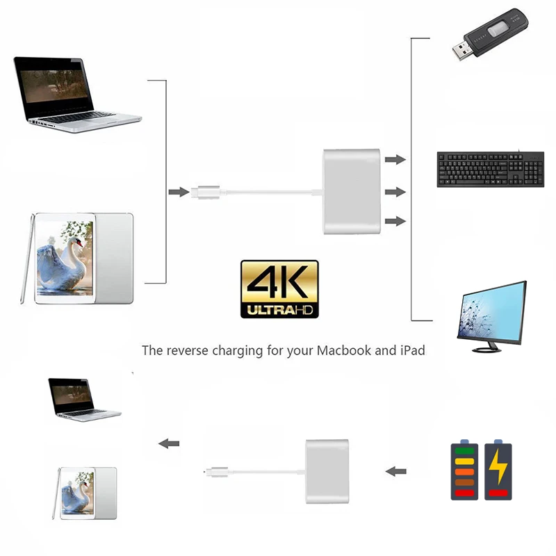 USBC to HDMI 4K USB 3.1 Type C 3 in 1 Charging Hub Adapter AV Video Alumunium Alloy Converter for M