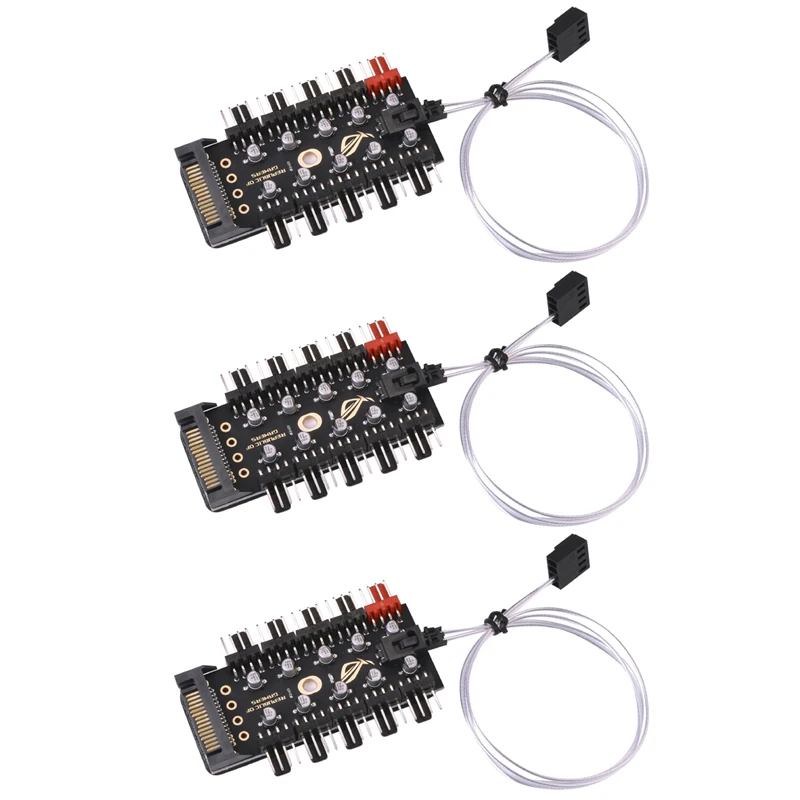 3PCS Computer Cable Connectors PWM Fan HUB Fan Speed Controller PC 1 to 10 4pin Fan Splitter Cable