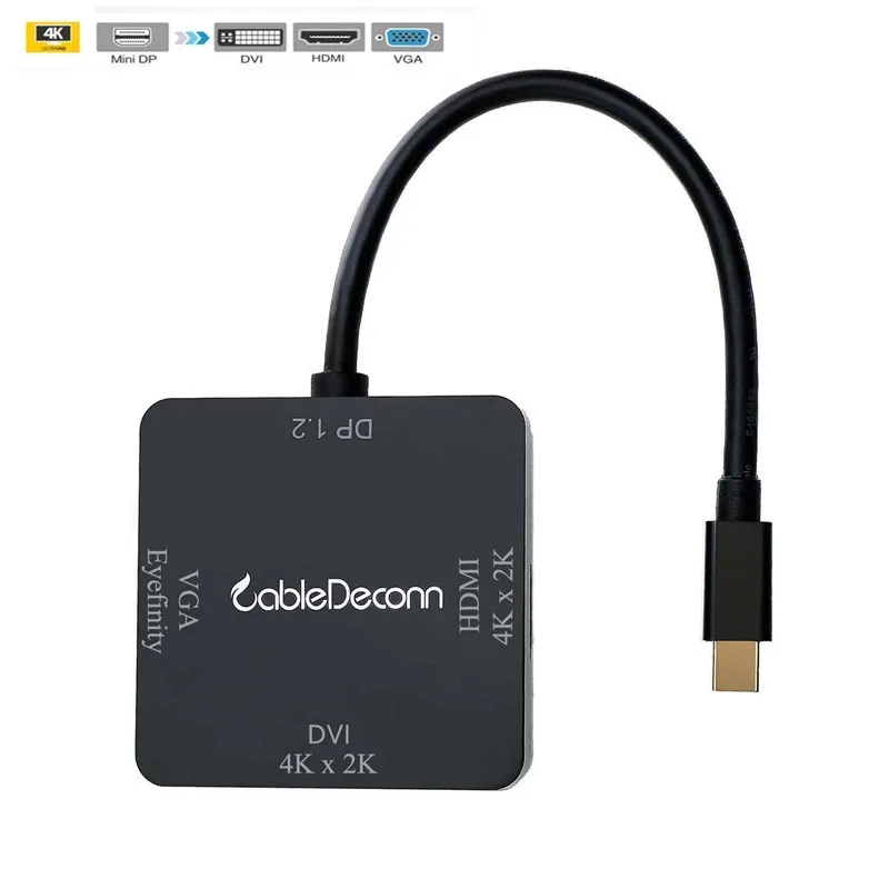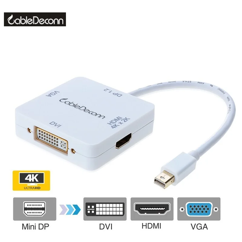 BEST 3in1 Mini DisplayPort DP v1.2 to HDMI 4K DVI VGA Thunderbolt Port Compatible Adapter Cable Square F